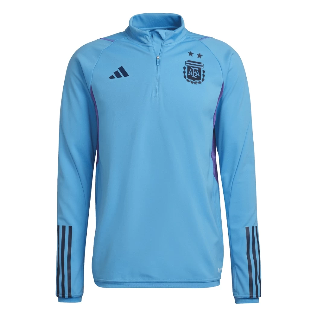 Beim Training wird der Grundstein für die nächsten großen Erfolge gelegt. Aus diesem Grund ziehen die Spieler der argentinischen Fußballnationalmannschaft ihre Trainingssession auch bei kaltem Wetter durch. Dabei unterstützt sie ein adidas Trainingsoberteil wie dieses. Die Daumenöffnungen an den Bündchen sorgen für ein Plus an Komfort bei fallenden Temperaturen. Und die feuchtigkeitsabsorbierende AEROREADY Technologie garantiert ein trockenes Tragegefühl.