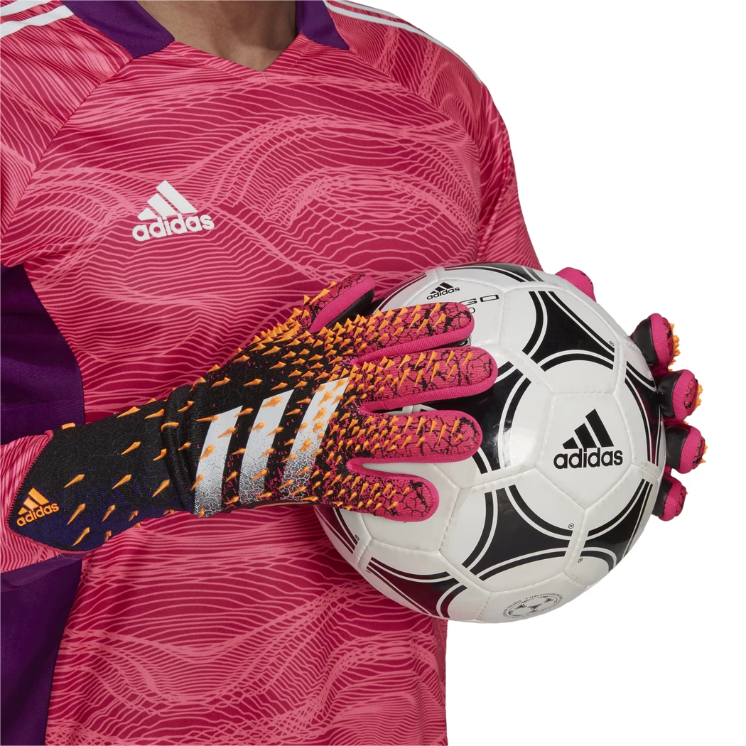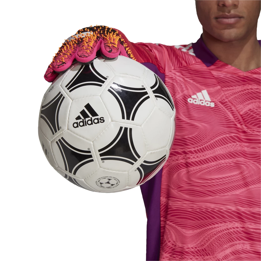 Kontrollier das Spiel. Dieser Torwarthandschuh für garantiert sicheren Grip, egal, ob bei nassen oder trockenen Bedingungen. Seine Handfläche aus strapazierfähigem Latex ist zum Schutz vor harten Schüssen gepolstert, damit du deinen Kasten sauber halten kannst. Die Finger sind außerdem eng geschnitten und garantieren so ein gutes Ballgefühl.
