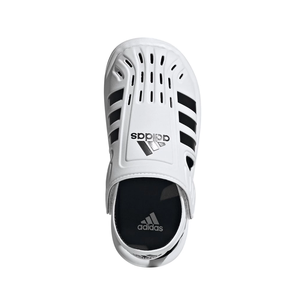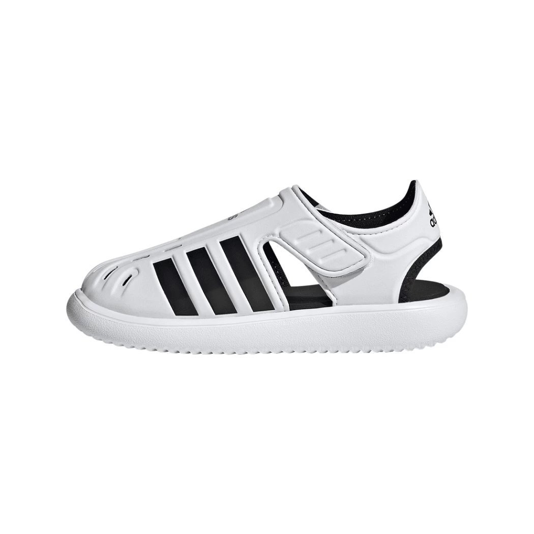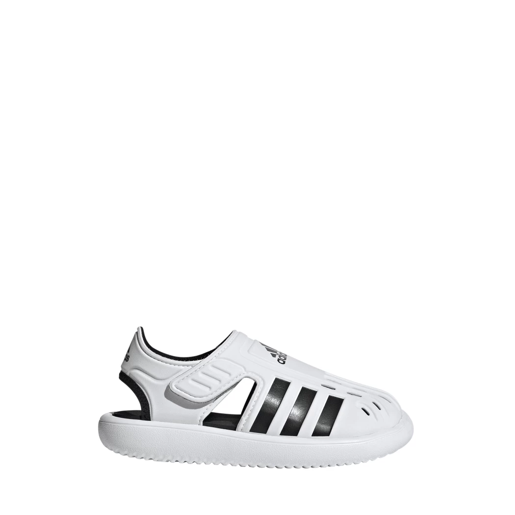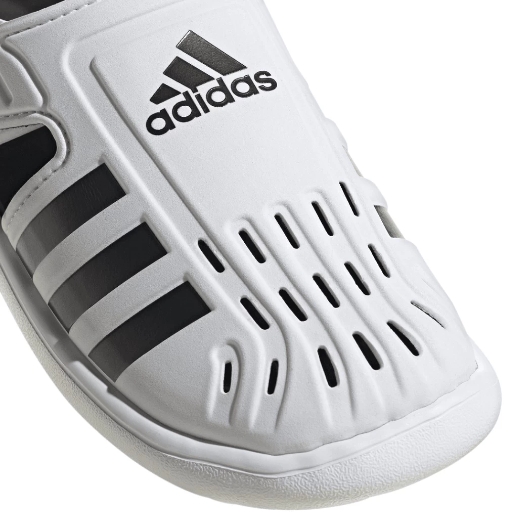 Campen, Planschen und Kanufahren – ja, es ist Urlaubszeit! Diese adidas Sandale für Kinder kommt mit praktischen Klettverschlüssen und sitzt auch bei nassen Füßen passgenau. Der geschlossene, perforierte Zehenbereich sorgt für schnelles Trocknen und bietet Schutz, wenn dein kleiner Schatz die Umgebung unsicher macht.
