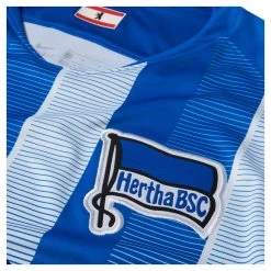 Das Hertha BSC Stadium Home Herren-Fußballtrikot 2018/19 aus atmungsaktivem, schweißableitendem Material sorgt auf dem Platz sowie in der Freizeit für kühlen, trockenen Tragekomfort.